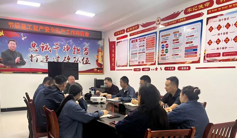 2025年10月9日,公司在国庆中秋假期结束后首个工作日,组织各科室负责人召开复工复产会议,全面部署节后安全生产运营工作,确保污水处理安全、稳定、高效运行。
